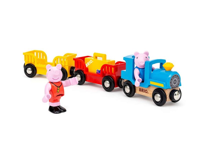 Peppa und George reisen mit dem Zug. Dieses farbenfrohe Zugset enthält Peppa- und George-Spielfiguren aus der beliebten Kleinkindserie Peppa Wutz und den passenden Zug, in dem die Figuren auf Reisen gehen. Dieses Spielzeug verfügt über die bekannten BRIO Magnete und ist eine tolle Ergänzung für jede BRIO World Eisenbahn. Was kannst du aus dem Fenster sehen? Mit lustigen Details, die der Serie nachempfunden sind, ist der Zug perfekt für kleine Fans und vollständig kompatibel mit der BRIO World.